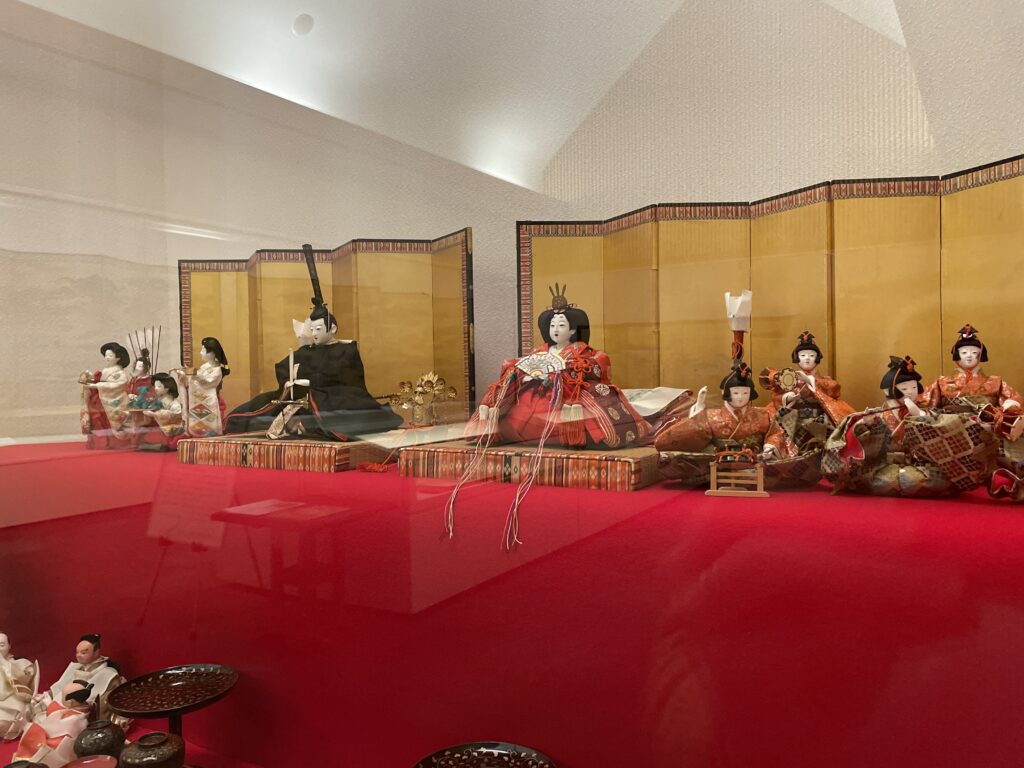不安定な天気が続いておりますが、昨日から晴れ間も見え始め明日の桃の節句もいい天気で迎えられそうです。当館では2月中旬より大木平蔵作の雛人形を展示しております。この雛人形は吉川家30代当主元光公の頃購入されたものになります。東京大空襲があった際には、男雛と女雛は幸いにも焼失を免れました。その後元光公夫人芳子様が孫娘の誕生の為、三人官女などをを新たに買い揃えられ今の形となりました。優美で精巧な雛人形はその装飾も大変細やかに作られています。4月7日(日)の会期終了まで展示しておりますので、ぜひご覧ください。